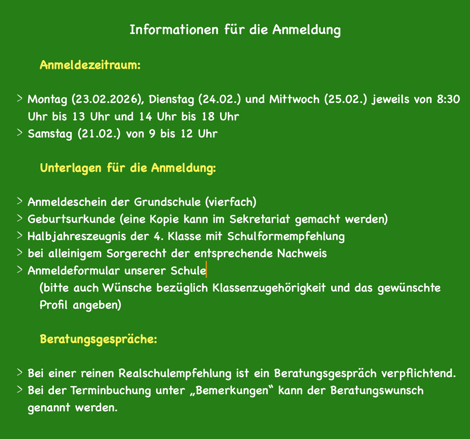 hier haben wir für Euch einen eigenen Homepagebereich gestaltet, so dass Ihr die wichtigsten Informationen zum Anmeldeverfahren und zu unserer Schule an einer Stelle findet.